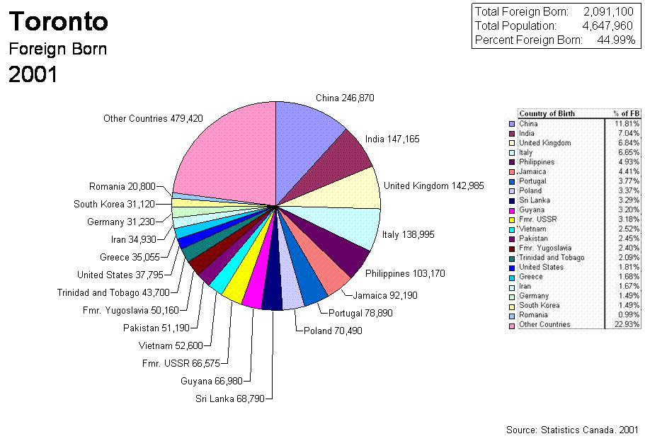 Toronto 2001 Pie Chart